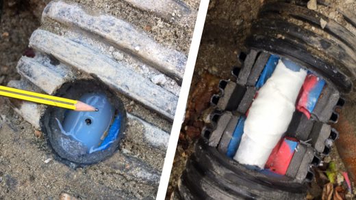 After contractors accidentally cut into an underground heating pipe with insulation lagging during construction work on a farm, a live leak repair kept the hot water on