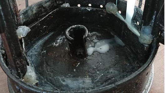 The spike easily bonded to the platform, creating a new holder capable of supporting a modern candle inside the lantern and completing part one of the restoration.