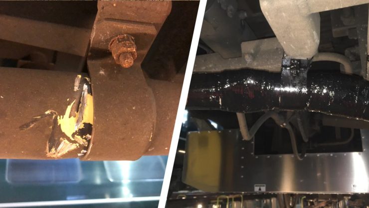 The rail operator was looking to repair the holes in the aluminium and provide better protection from future damage, without having to take the train out of service for a long period of time to replace the entire conduit pipe.