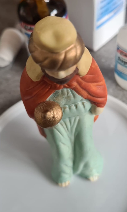 The ornament needing repair was a figure of one of the Three Wise Men from a Christmas nativity. He had become broken when being retrieved from the loft and was no longer able to join Mary, Joseph, Baby Jesus, the wee donkey and the rest on display.