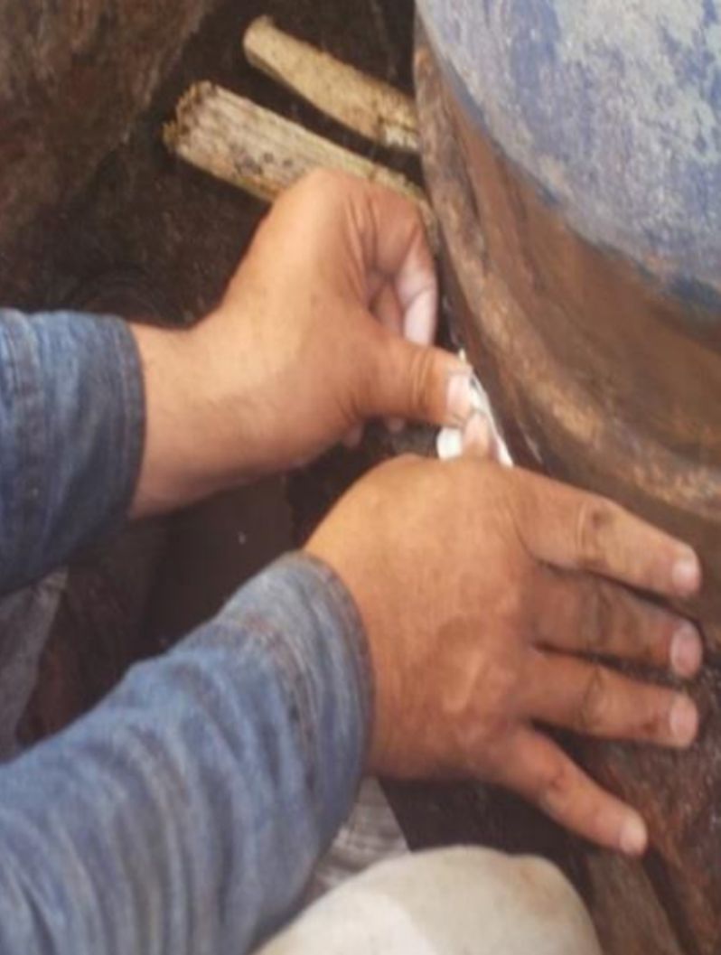 Liquid Metal was brush applied across areas of the pipe which had been corroded and degraded over time, including the tee-joint sealed earlier in the programme.