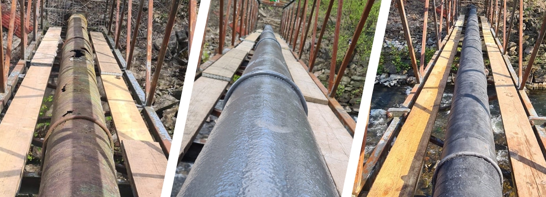 The final result was a very smart pipe bridge now well protected from future corrosion and reinforced against breaches by Liquid Metal and SylWrap CR.