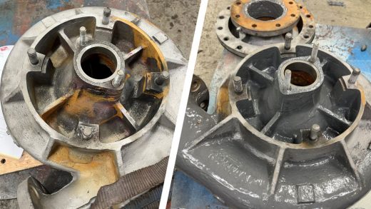 The inside of a Worthington Simpson pump for which replacement parts no longer exist is sealed and reinforced after pinholes were left in the casing during the removal of corrosion