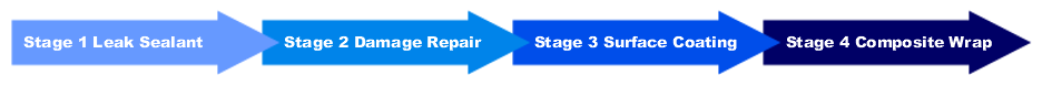 Damage repair products restore surface profile by rebuilding and strengthening areas of pipeline which have degraded or weakened. They also provide full contact and load spreading between the pipe and the composite layer applied at Stage 4.