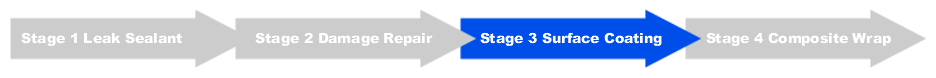 A surface coating is applied at Stage 3 of the Sylmasta Pipe Refurbishment System to form a resistant outer layer of protection against corrosion, chemical attack, and other environmental factors. Should internal corrosion breach the original pipe wall, a surface coating also provides an impermeable membrane containing fluid.